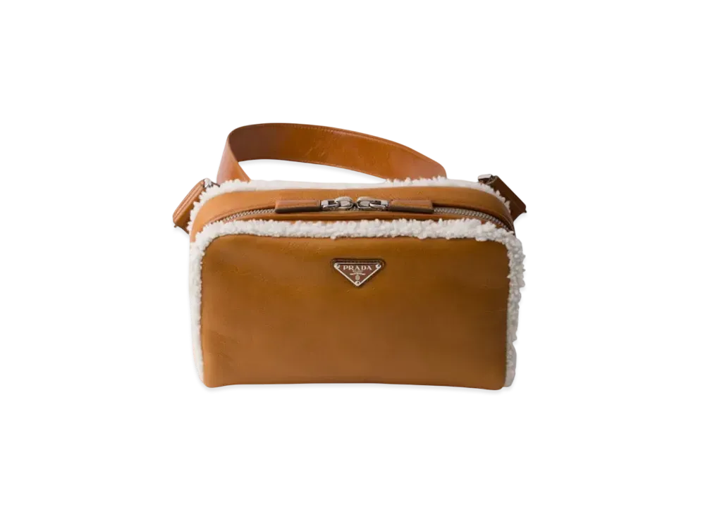 PRADA Shearling Shoulder Bag "Cognac/Natural"