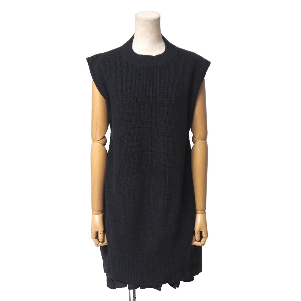 ■美品■2023SS■Sacai サカイ ワンピース サイズ1 ノースリーブ 異素材切替 ニット プリーツ フレア ブランド古着【中古】20251210/RA6858