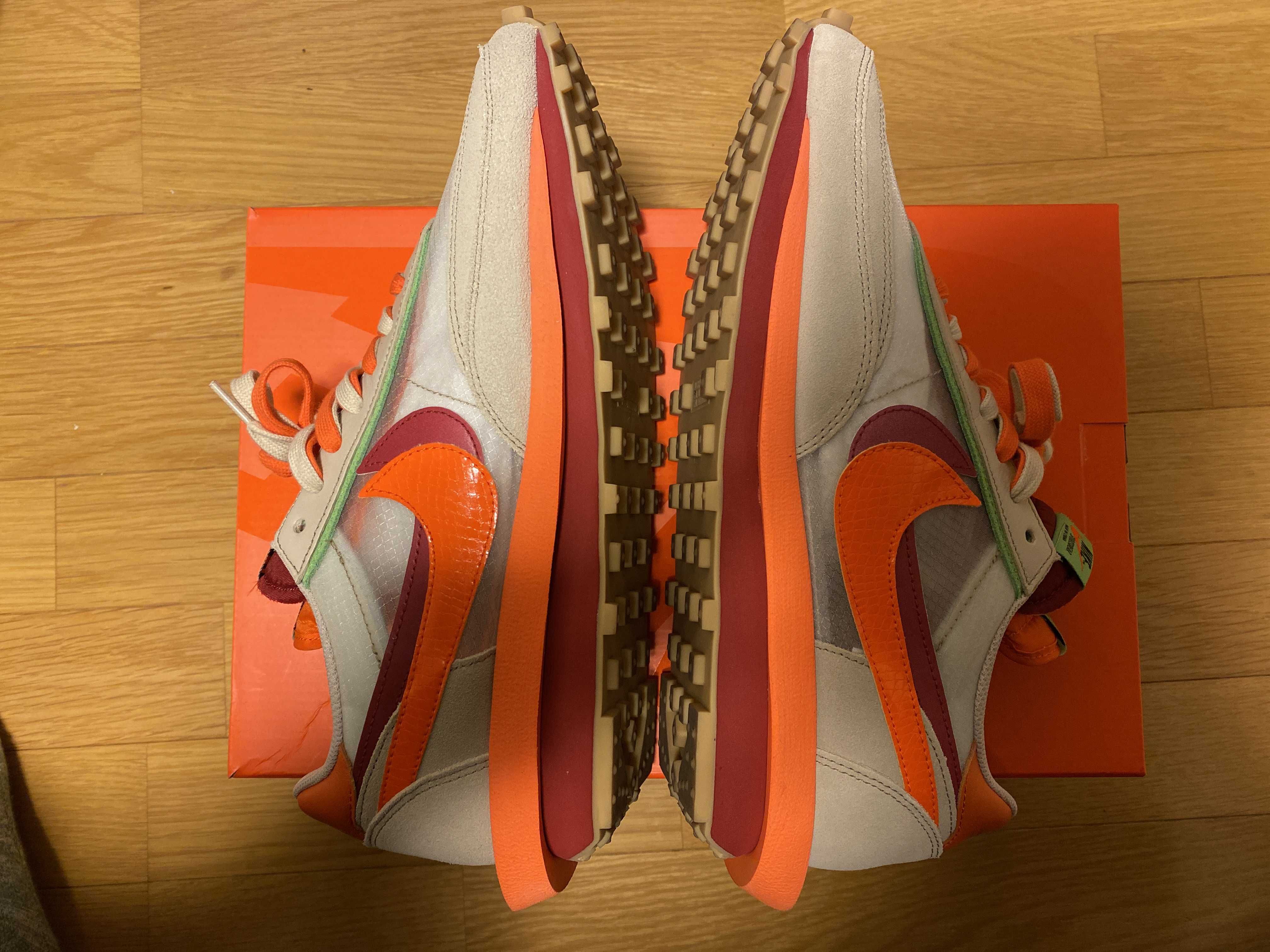 CLOT × Sacai × Nike LD Waffle "Orange Blaze"