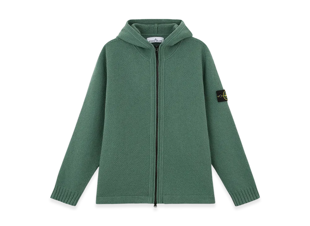 Stone Island 567A3 Lambswool Full Zipper Cardigan with Hood - 24FW "Sage Green"