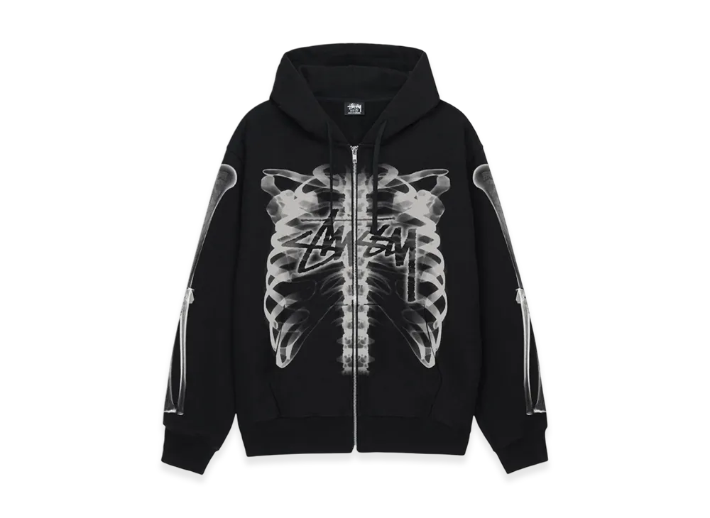 Stussy Rib Cage Zip Hoodie "Black/White"