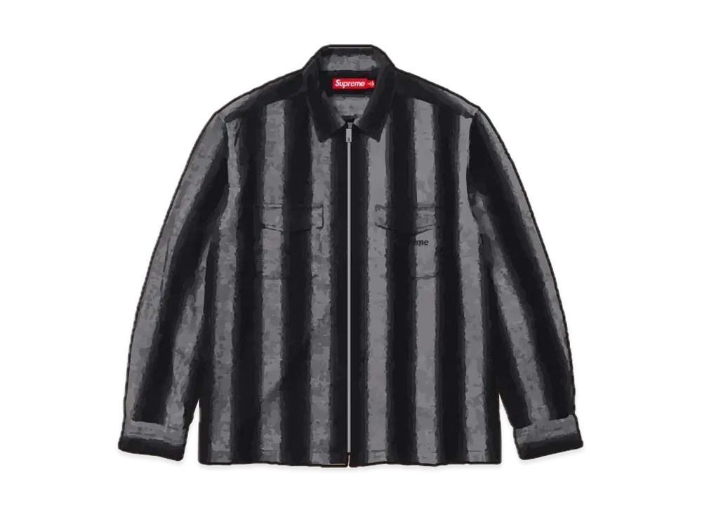 Supreme Stripe Flannel Zip Up Shirt "Black"