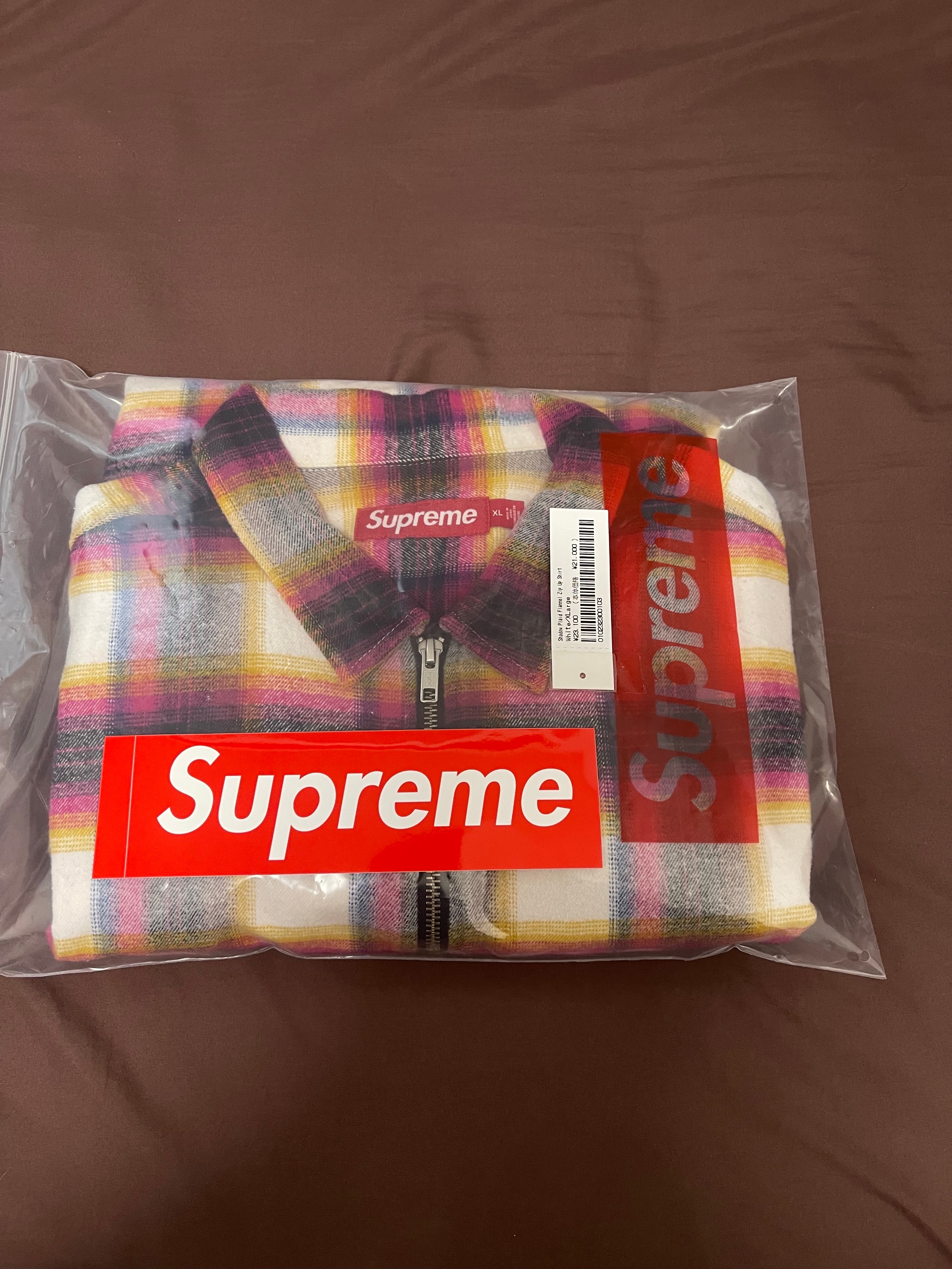 Supreme Shadow Plaid Flannel Zip Up Shirt "White"