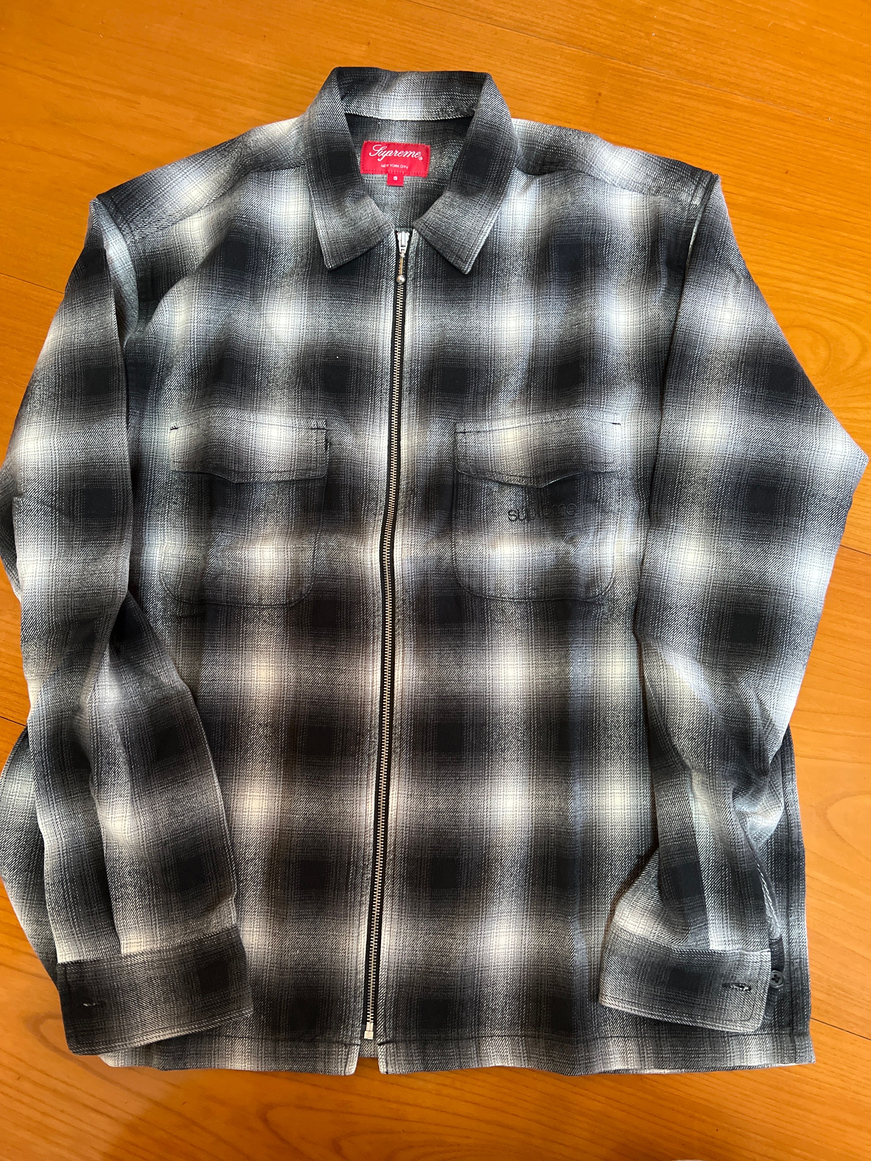Supreme Shadow Plaid Flannel Zip Up Shirt "Black"