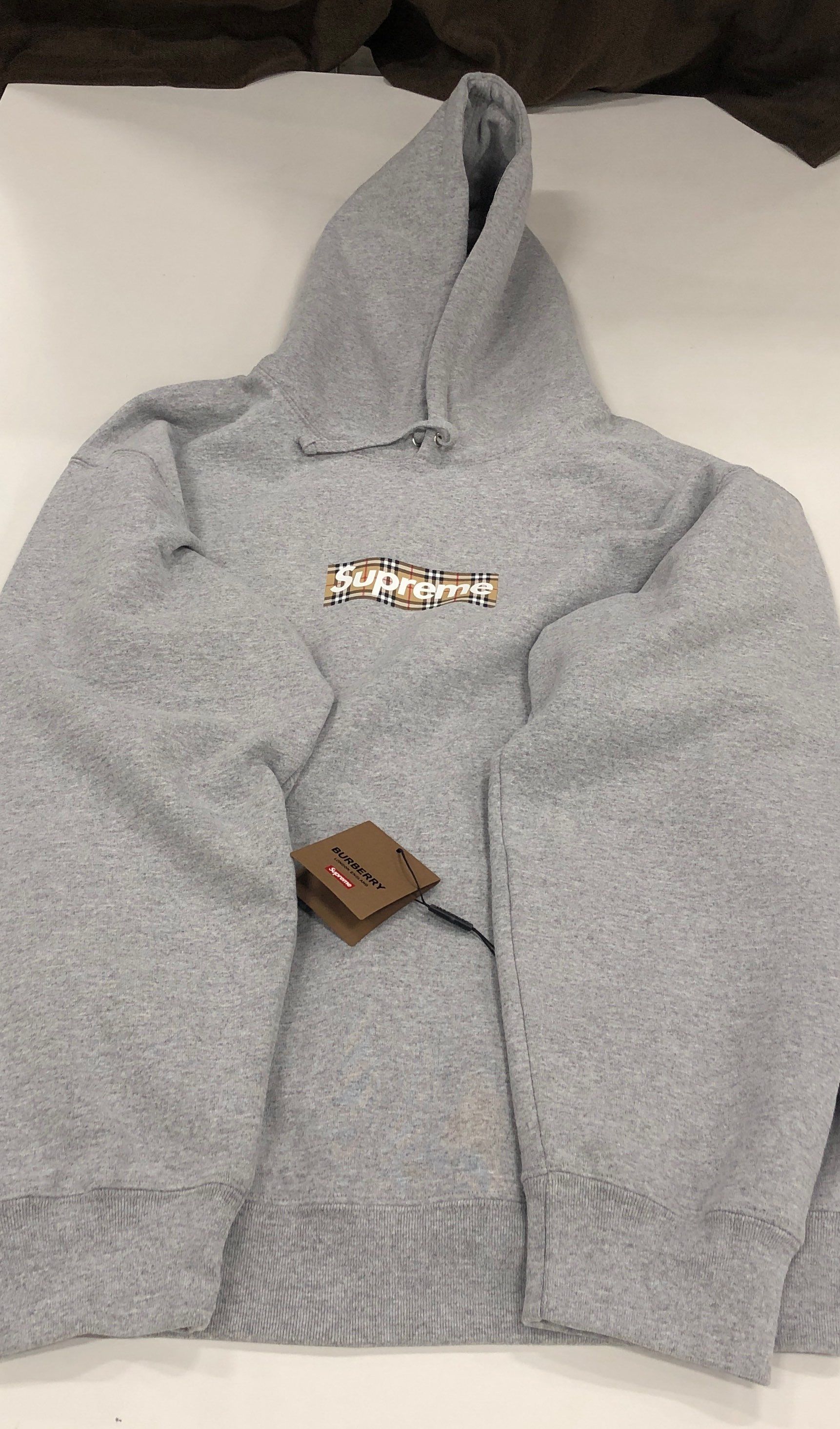 Supreme / Burberry Box Logo Hooded Sweatshirt "Heather Grey"