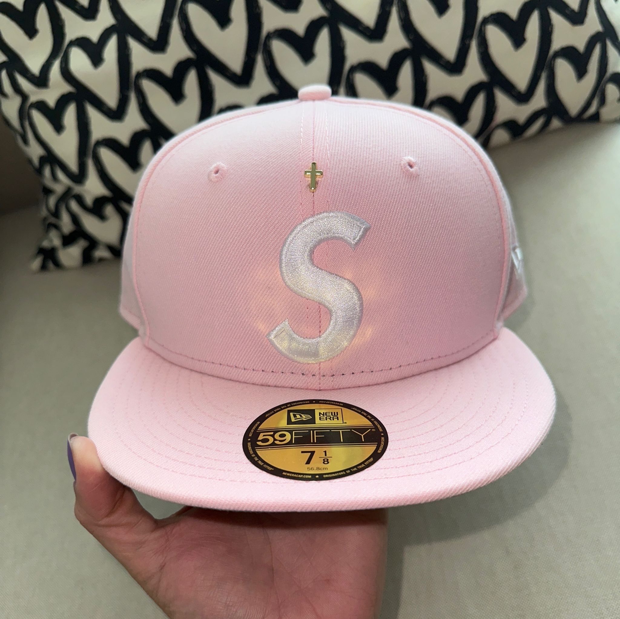 Supreme Gold Cross S Logo New Era "Pink"