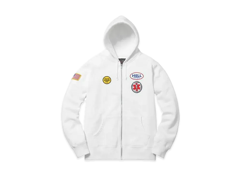 Supreme x HYSTERIC GLAMOUR Patches Zip Up Sweatshirt"White"