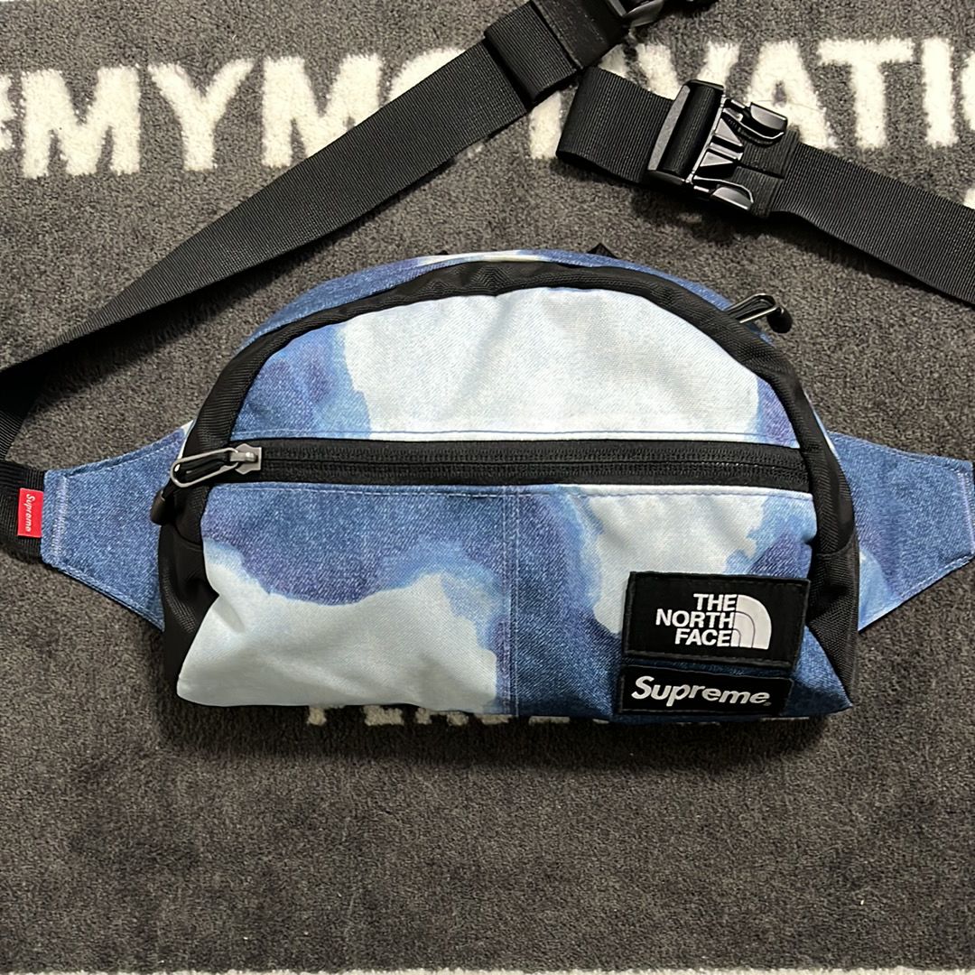 Supreme x The North Face Bleached Denim Print Shoulder Bag "Indigo"