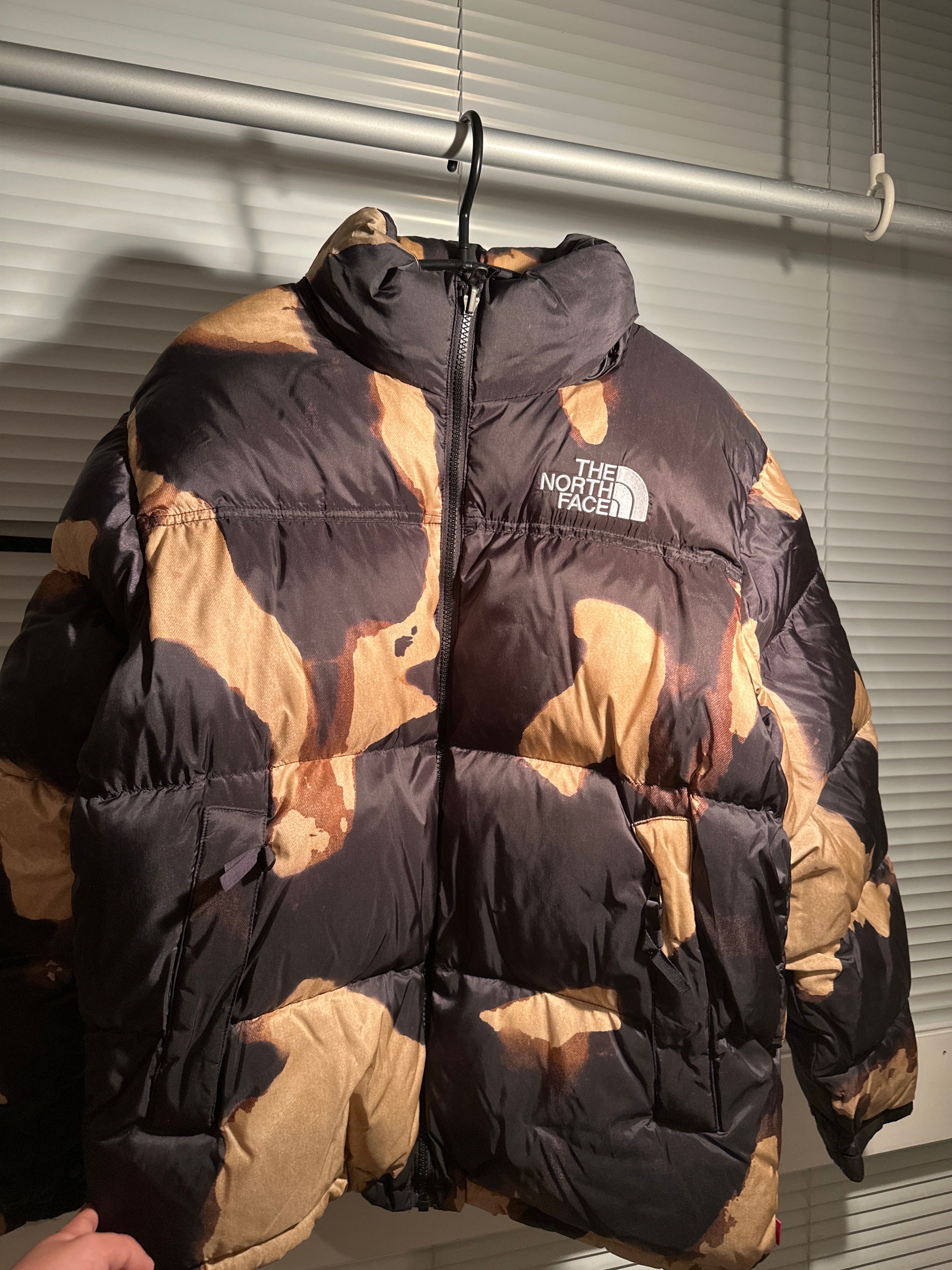 Supreme x The North Face Bleached Denim Print Nuptse Jacket "Black"