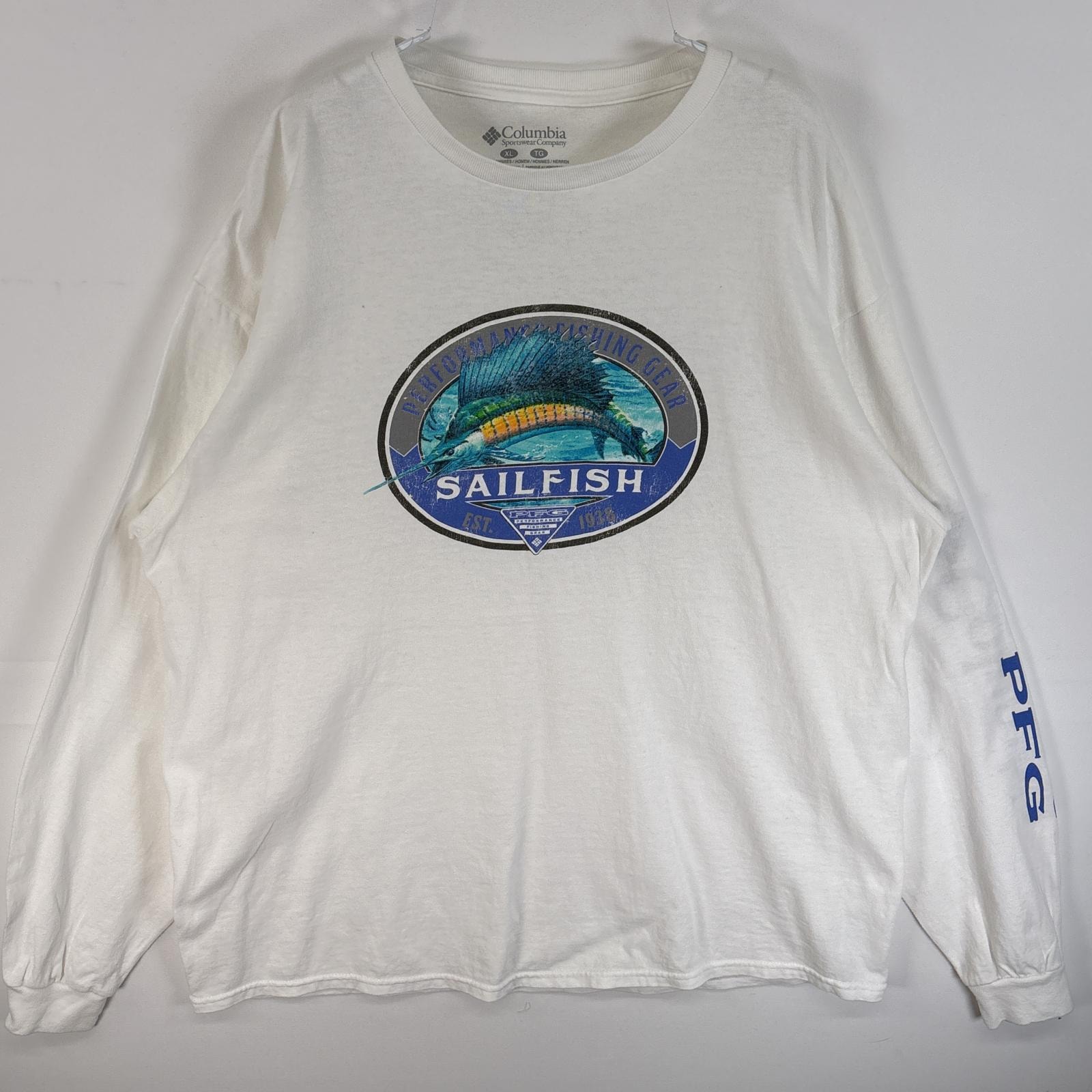 古着 コロンビア Columbia 長袖Tシャツ PFG ラバープリント 袖プリント XL ホワイト系 メンズ