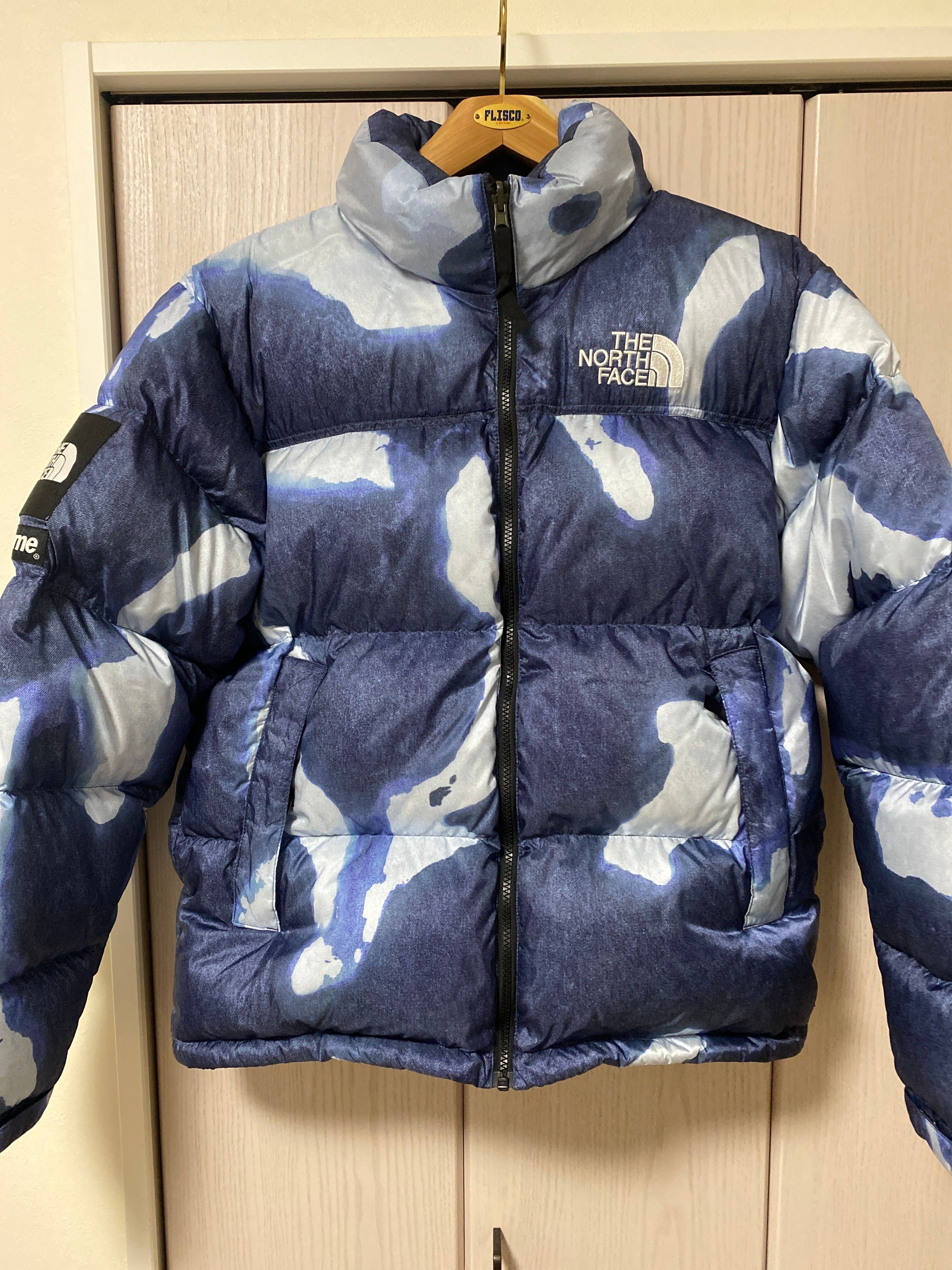 Supreme x The North Face Bleached Denim Print Nuptse Jacket "Indigo"