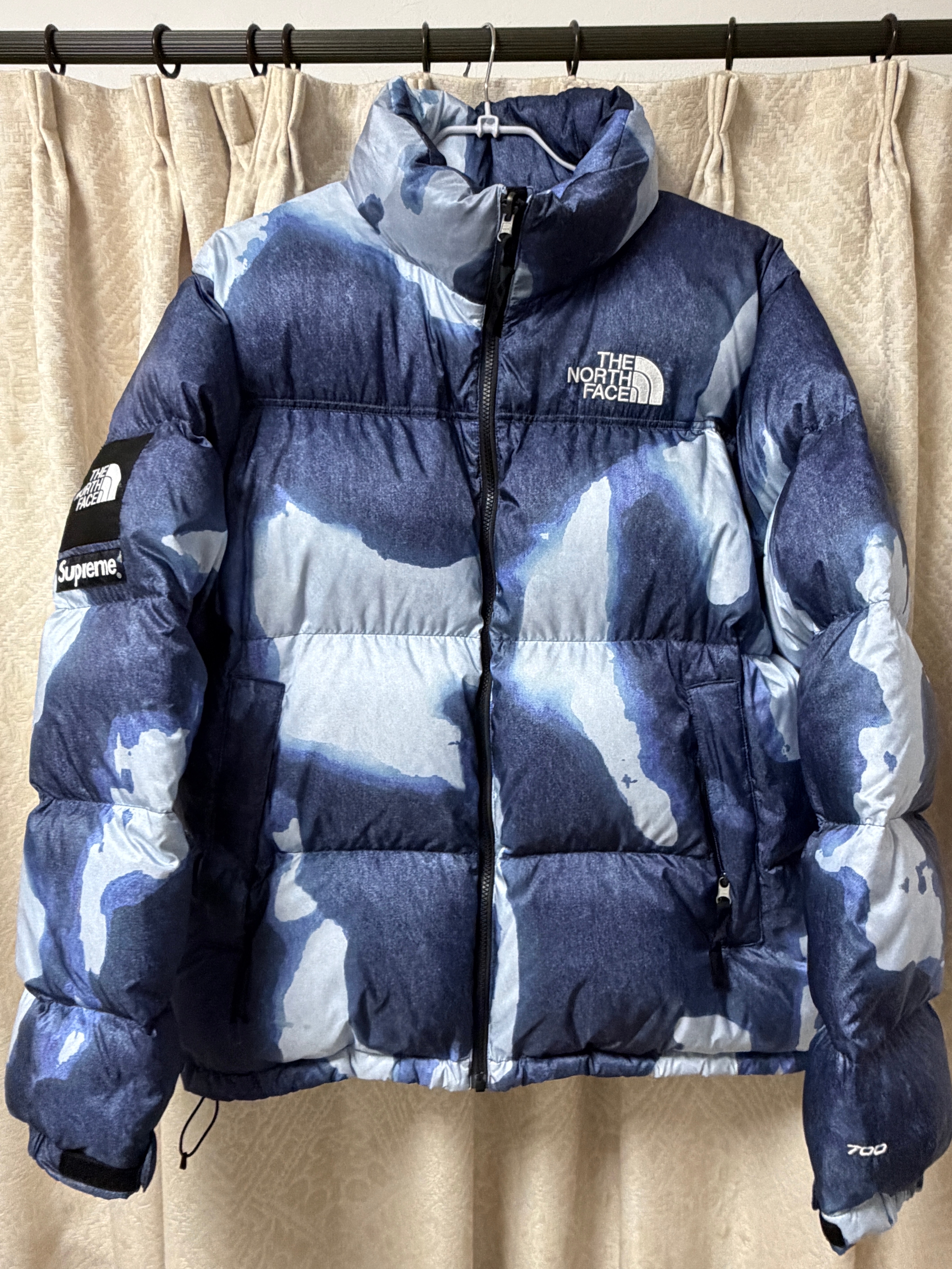 Supreme x The North Face Bleached Denim Print Nuptse Jacket "Indigo"