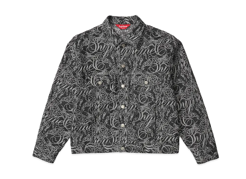 Supreme Script Jacquard Denim Trucker Jacket "Washed Black"