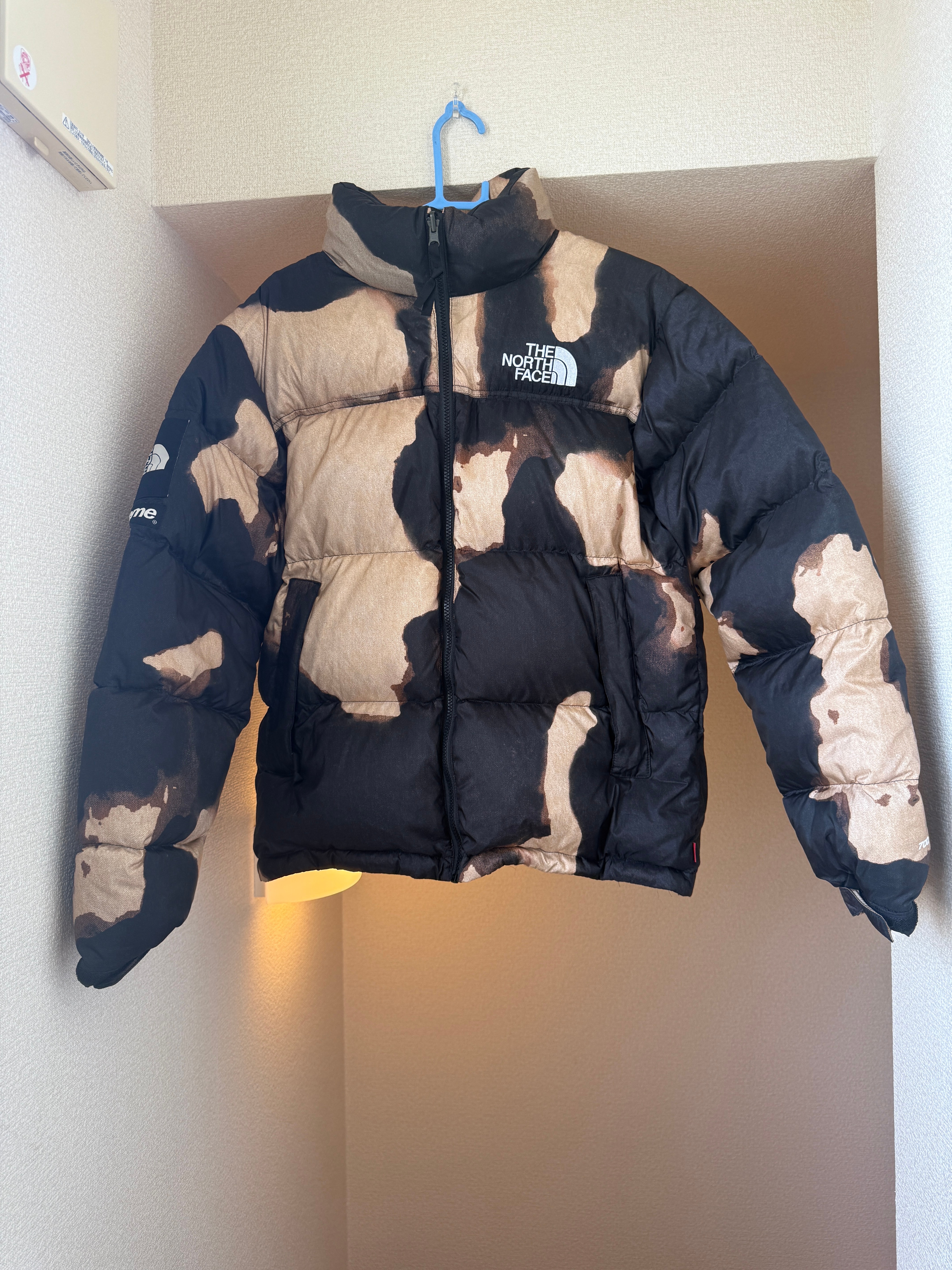 Supreme x The North Face Bleached Denim Print Nuptse Jacket "Black"