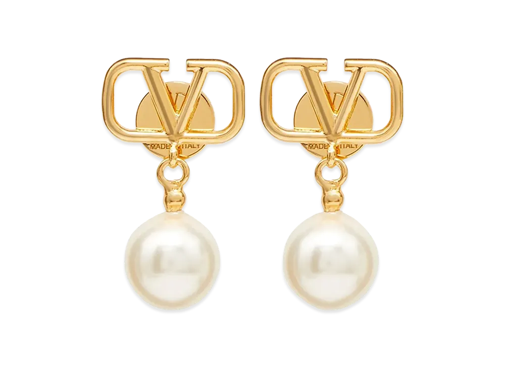 Valentino Women's Vlogo Signature Earrings With Swarovski Pearls "Gold/Cream"