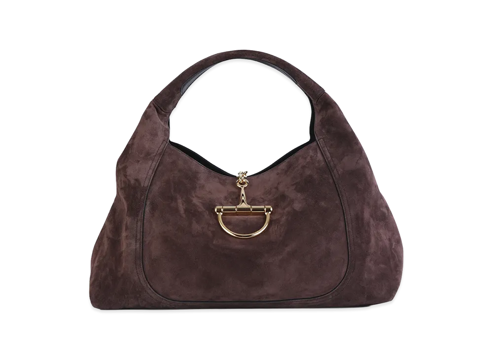 GUCCI Women's Suede Maxi Gucci Softbit Shoulder Bag "Brown"