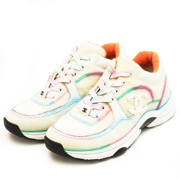 【美品】CHANEL シャネル スニーカー サイズ 36 レディース スニーカー フェルト ココマーク ローカット 春夏 パステル 軽量 シューズ 靴 袋付属 アイボリー マルチカラー イタリア製