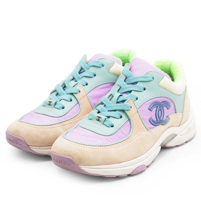 【極美品】CHANEL シャネル スニーカー サイズ 36 レディース G34360 クリアCOCOマーク スウェード カラフル シューズ 靴 マルチカラー パープル 紫 イタリア製