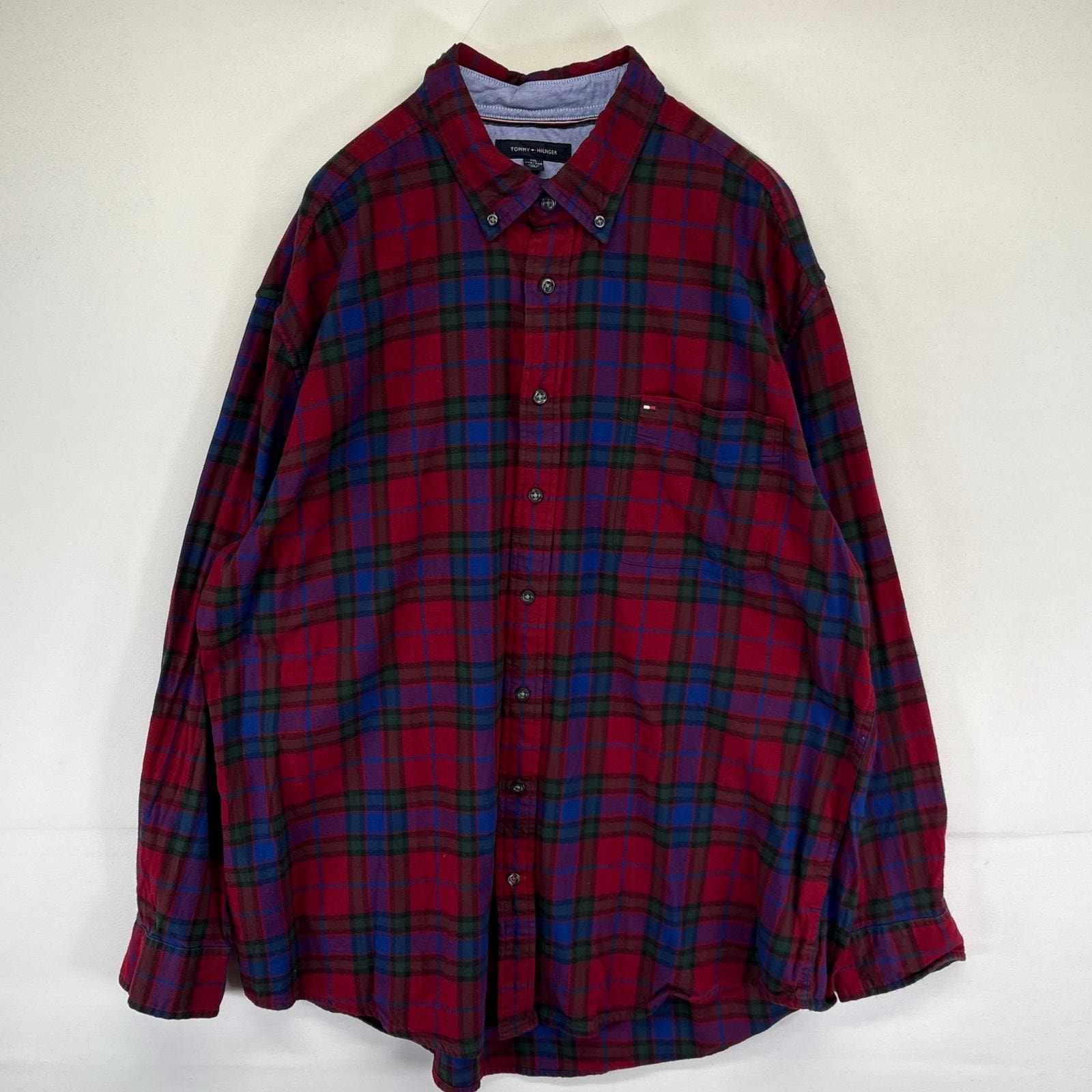 古着 トミーヒルフィガー TOMMY HILFIGER 長袖シャツ ワンポイント ボタンダウン 大きいサイズ 2XL マルチカラー チェック メンズ