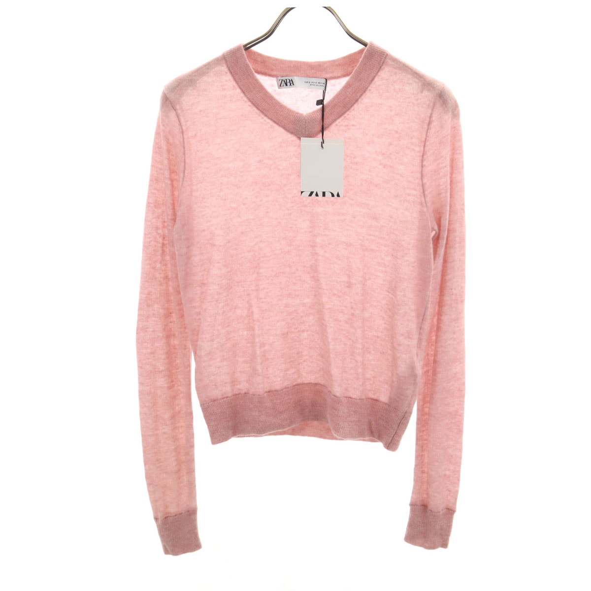 未使用 ZARA ザラ アルパカブレンド 長袖 Vネック セーター S ピンク ニット
