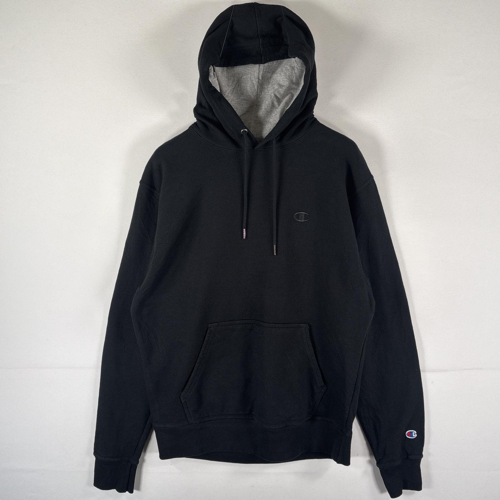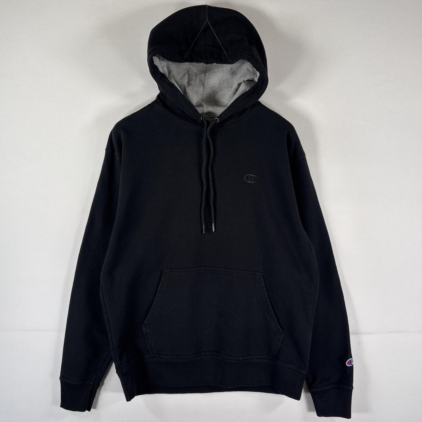 古着 チャンピオン Champion パーカー スウェット プルオーバー ワンポイントロゴ刺繍 フーディ ワッペン S ブラック メンズ