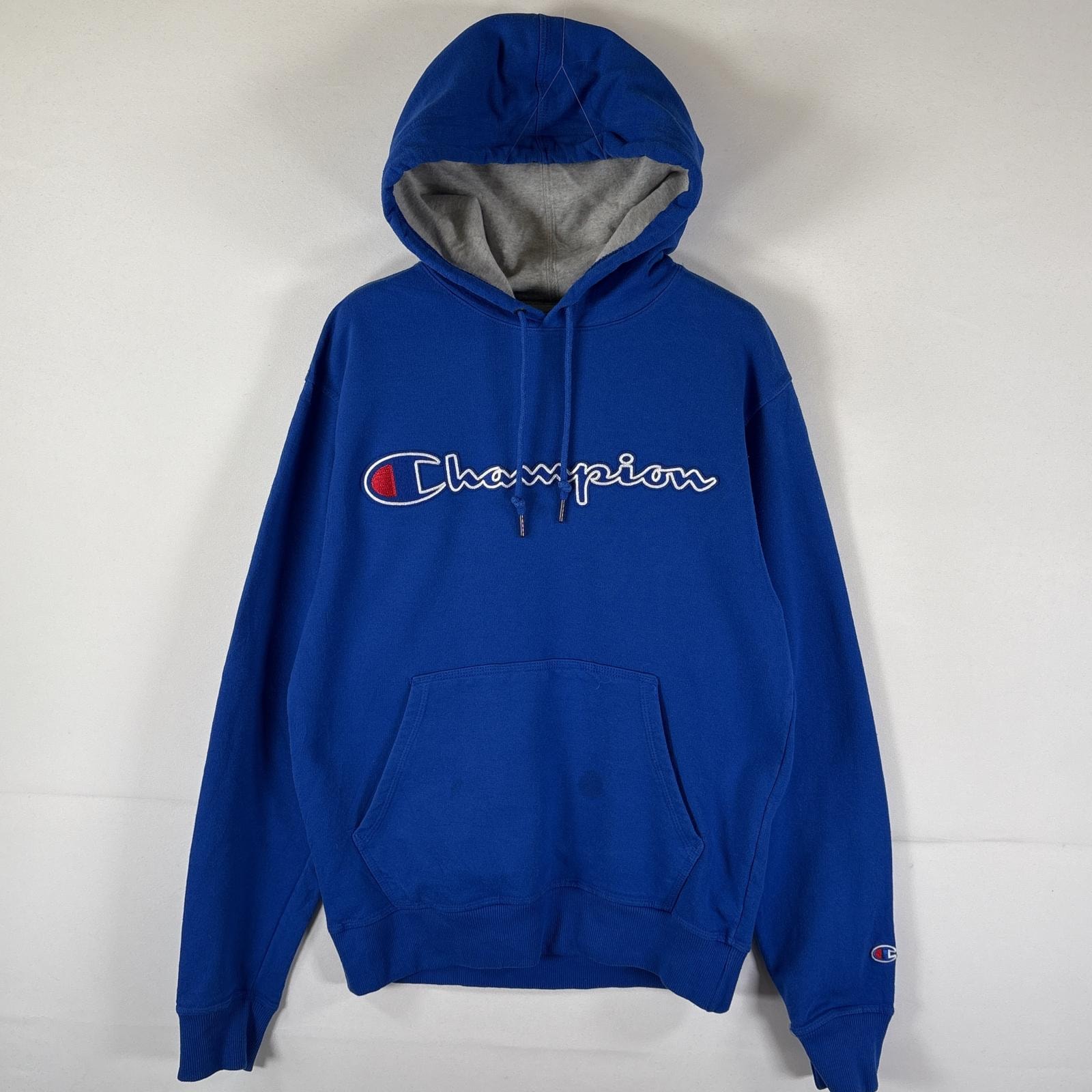 古着 チャンピオン Champion パーカー リバースウィーブ プルオーバー ワッペンロゴ フーディ スウェット MEDIUM ブルー メンズ