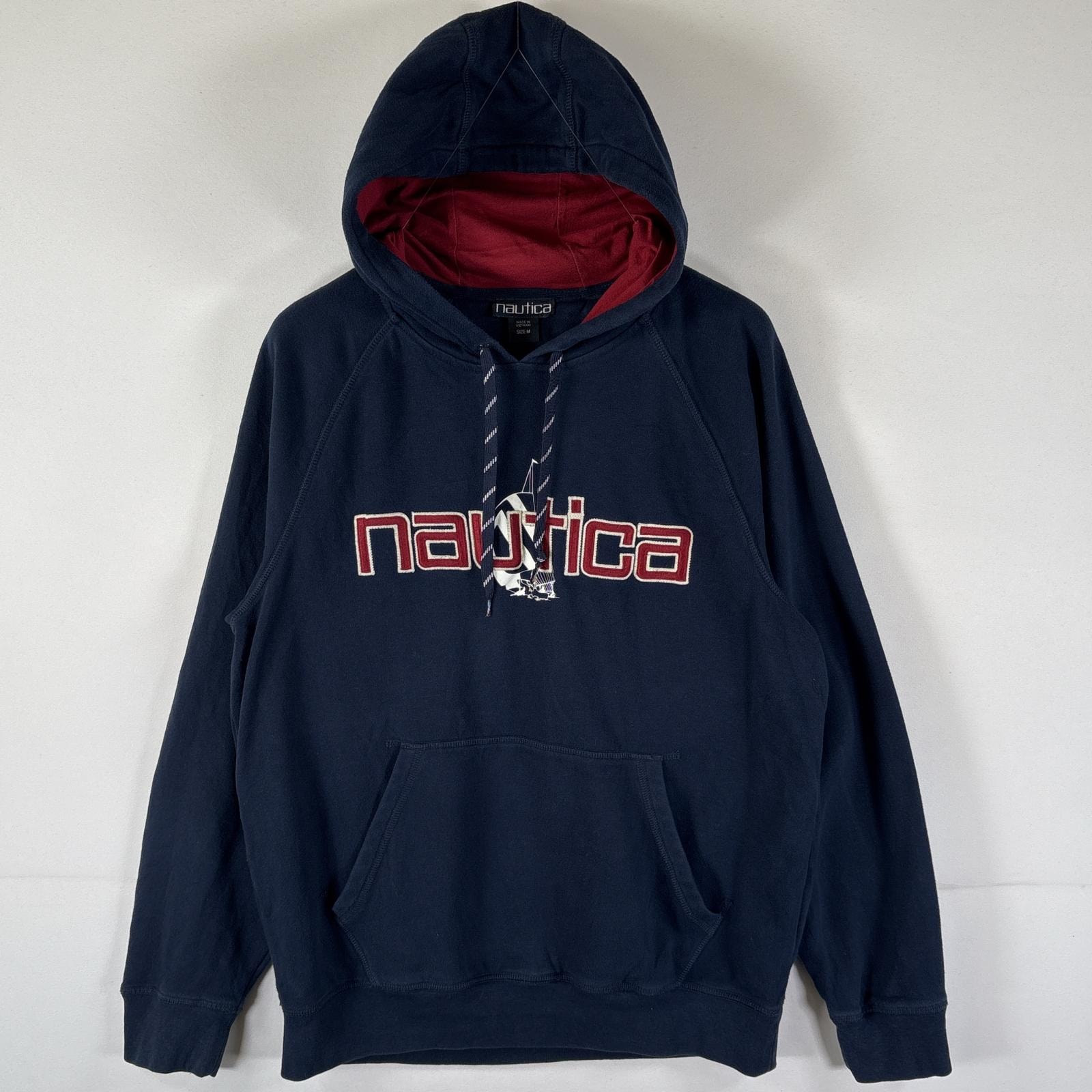 古着 ノーティカ NAUTICA パーカー プルオーバー フーディ スウェット ラグラン ビッグロゴ刺繍 M ネイビー メンズ