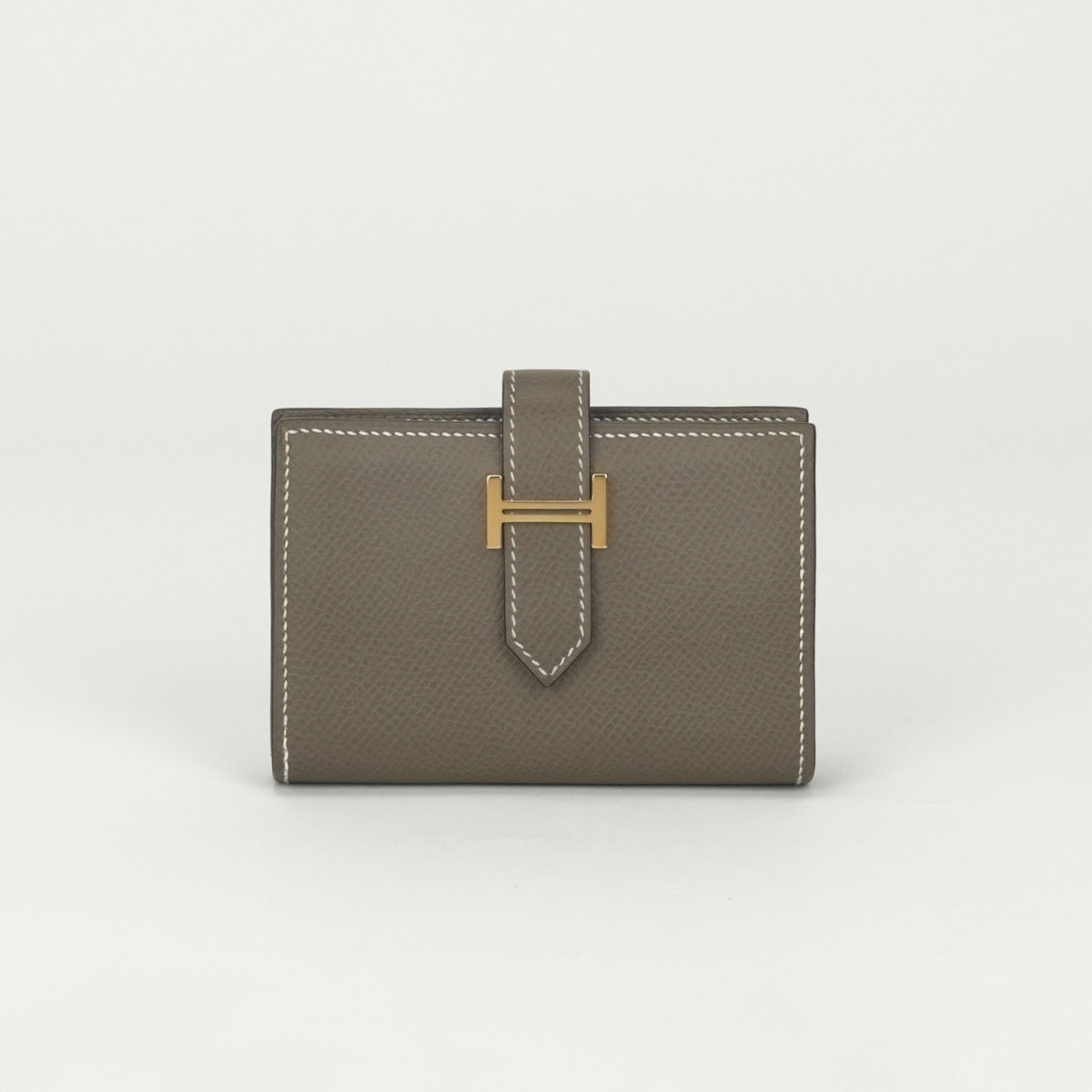 エルメス HERMES ベアンミニ ベアン ミニ 小銭入れ付き 財布 二つ折り財布 ミニ財布 ミニウォレット エプソン エトゥープ Etoupe グレー Gray 灰 ゴールド金具 コンパクト財布 ヴォーエプソン