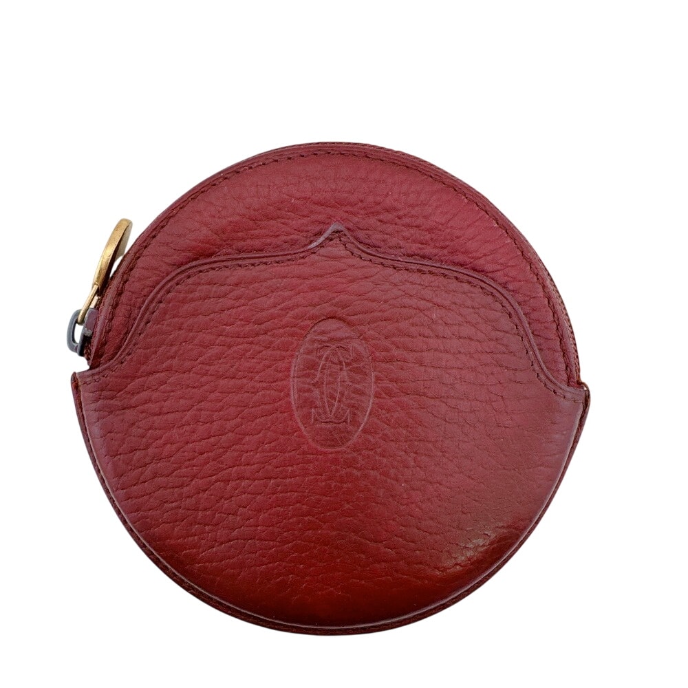 カルティエ CARTIER コインケース マストライン 丸形 小銭入れ ラウンドファスナー ボルドー