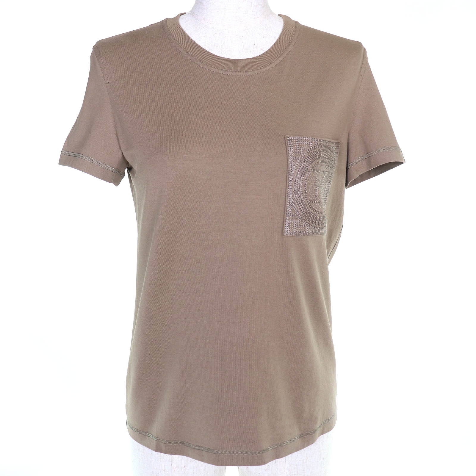 極美品 エルメス Hロゴ刺繍 半袖Tシャツ カーキ 36 3H4614DL