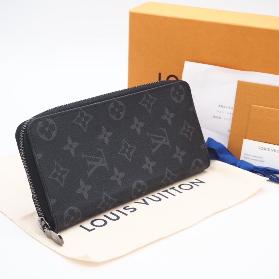 美品 LOUIS VUITTON ルイ・ヴィトン モノグラム エクリプス ジッピーウォレットヴェルティカル M62295 長財布 ブラック グレー コーティングキャンバス レザー メンズ