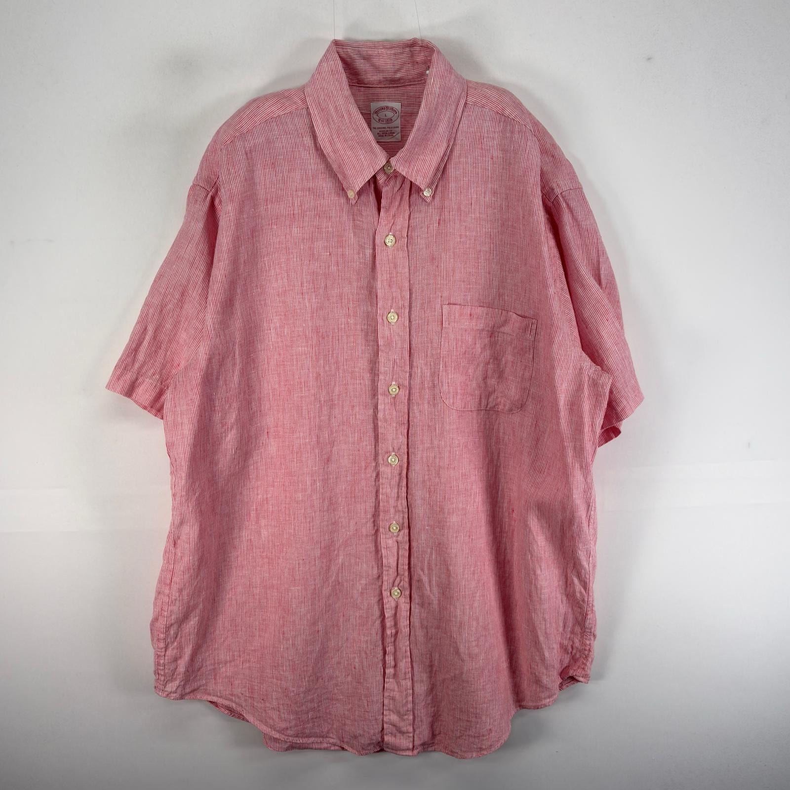 古着 ブルックスブラザーズ Brooks Brothers 半袖シャツ リネン ボタンダウン L レッド系 ストライプ メンズ