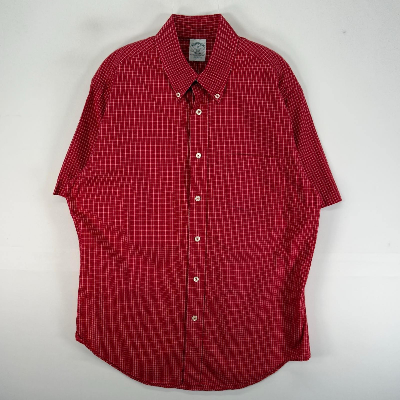 古着 ブルックスブラザーズ Brooks Brothers 半袖シャツ 胸ポケ REGENT ボタンダウン M レッド系 チェック メンズ