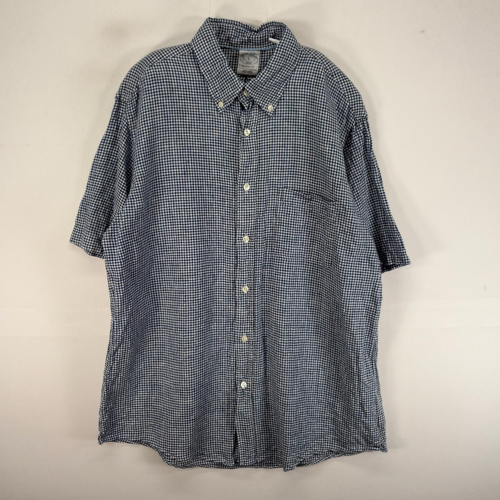 古着 ブルックスブラザーズ Brooks Brothers 半袖シャツ 胸ポケ 1818 リネン L ブルー系 チェック メンズ