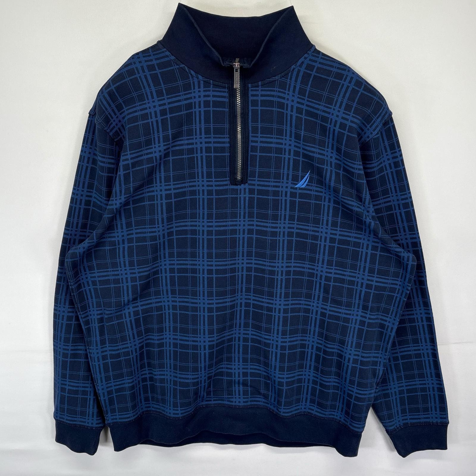 古着 ノーティカ NAUTICA スウェット トレーナー プルオーバー クルーネック ハーフジップ チェック柄 14041 ブルー メンズ