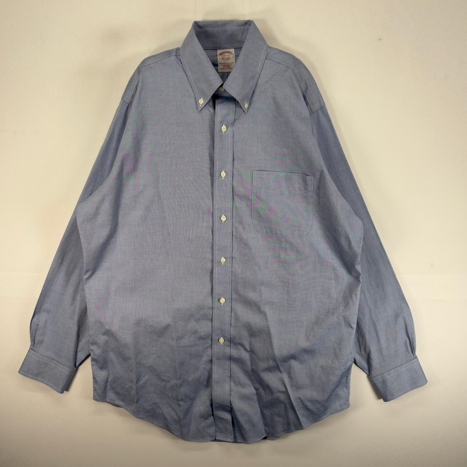 古着 ブルックスブラザーズ Brooks Brothers 長袖シャツ 胸ポケ ボタンダウン M ブルー系 無地 メンズ