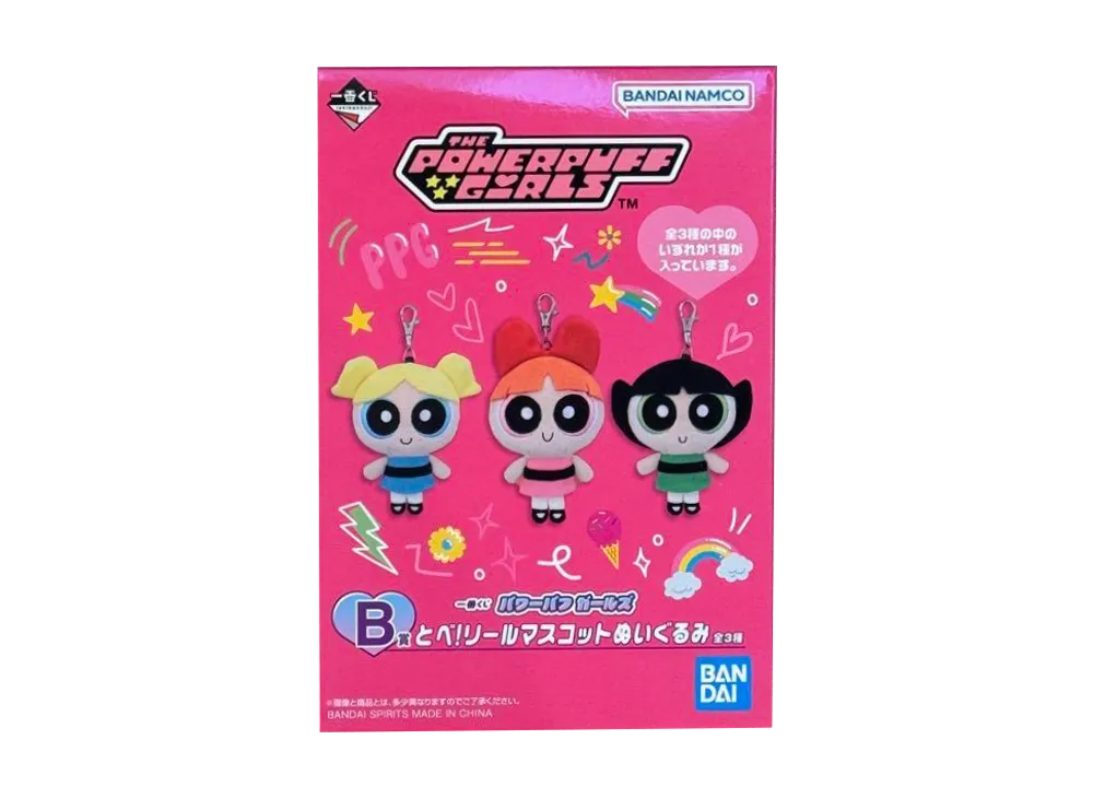 BANDAI "Ichiban Kuji" -Powerpuff Girls- B Prize Tobe! Reel Mascot Plush Box