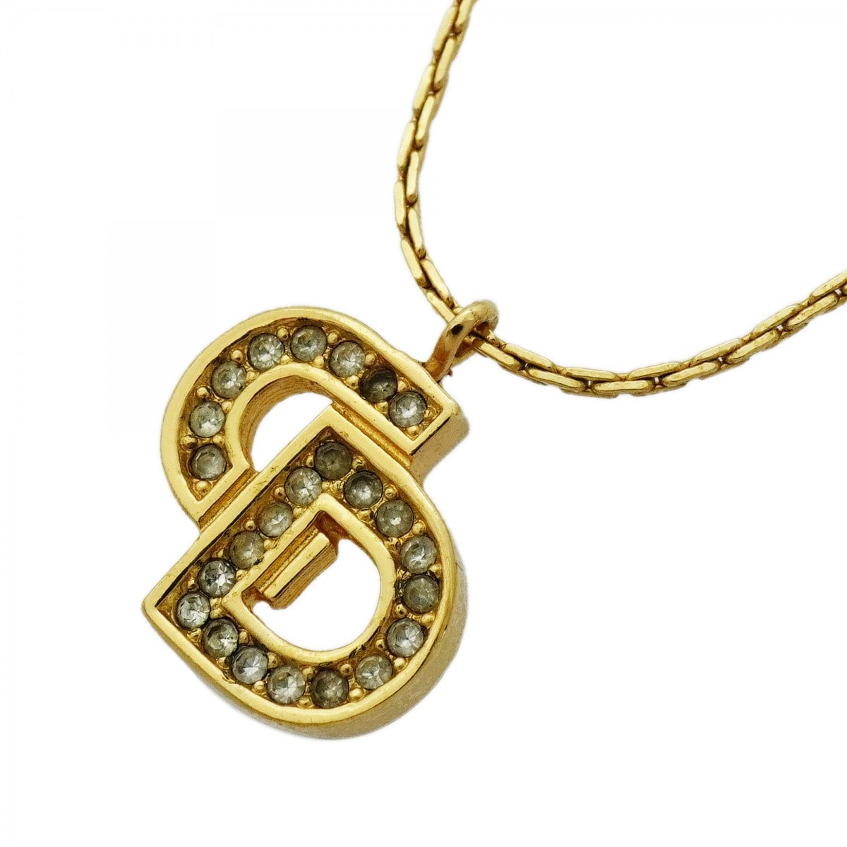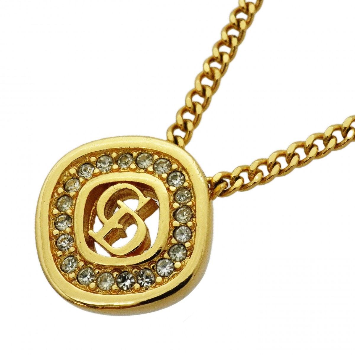 ★SALE【6jcb0624-k】クリスチャンディオール ネックレス CDロゴ GPメッキ ラインストーン ゴールド【中古】レディース