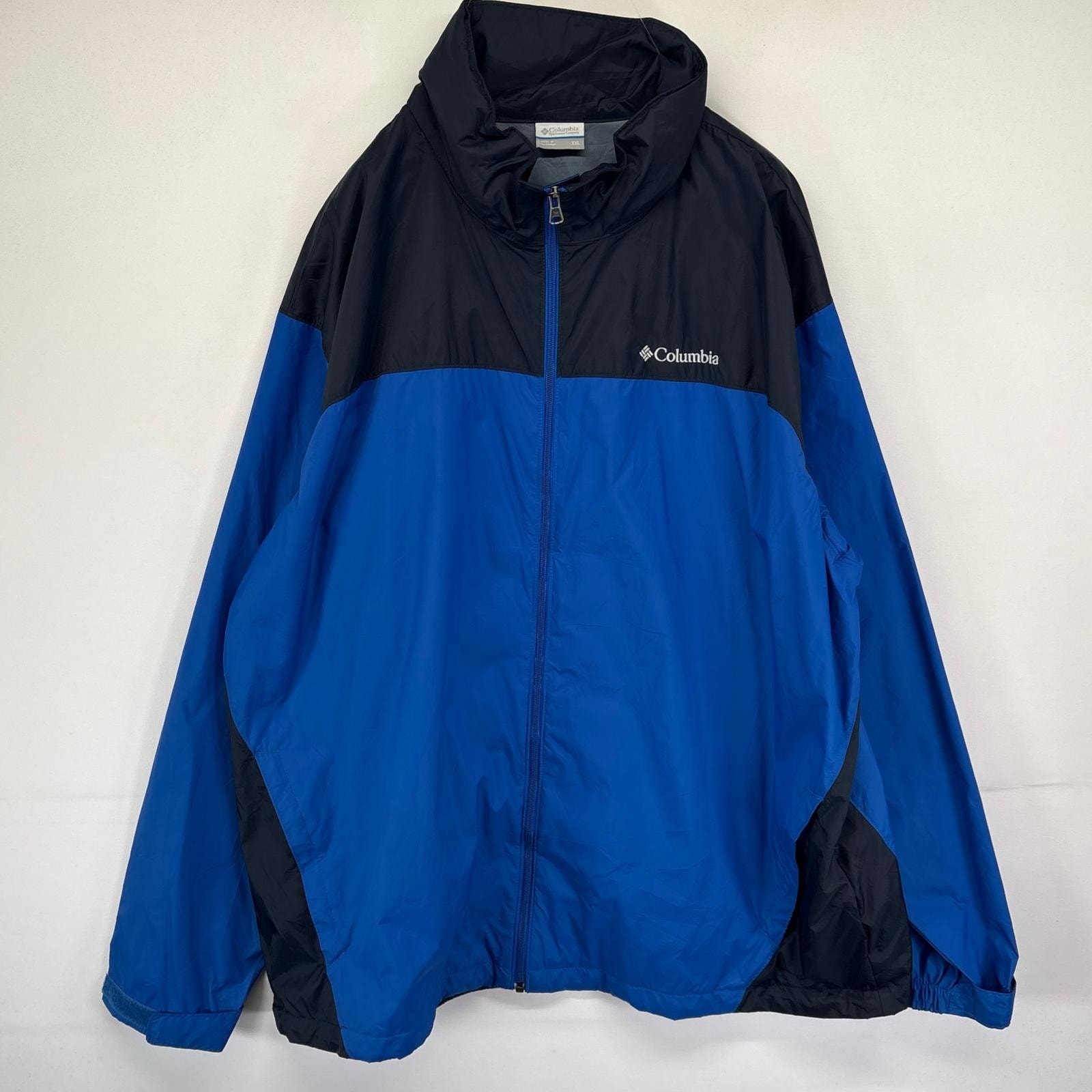 古着 コロンビア Columbia ナイロンジャケット フルジップ ワンポイントロゴ刺繍 オムニシールド 大きいサイズ 2XL ブルー メンズ