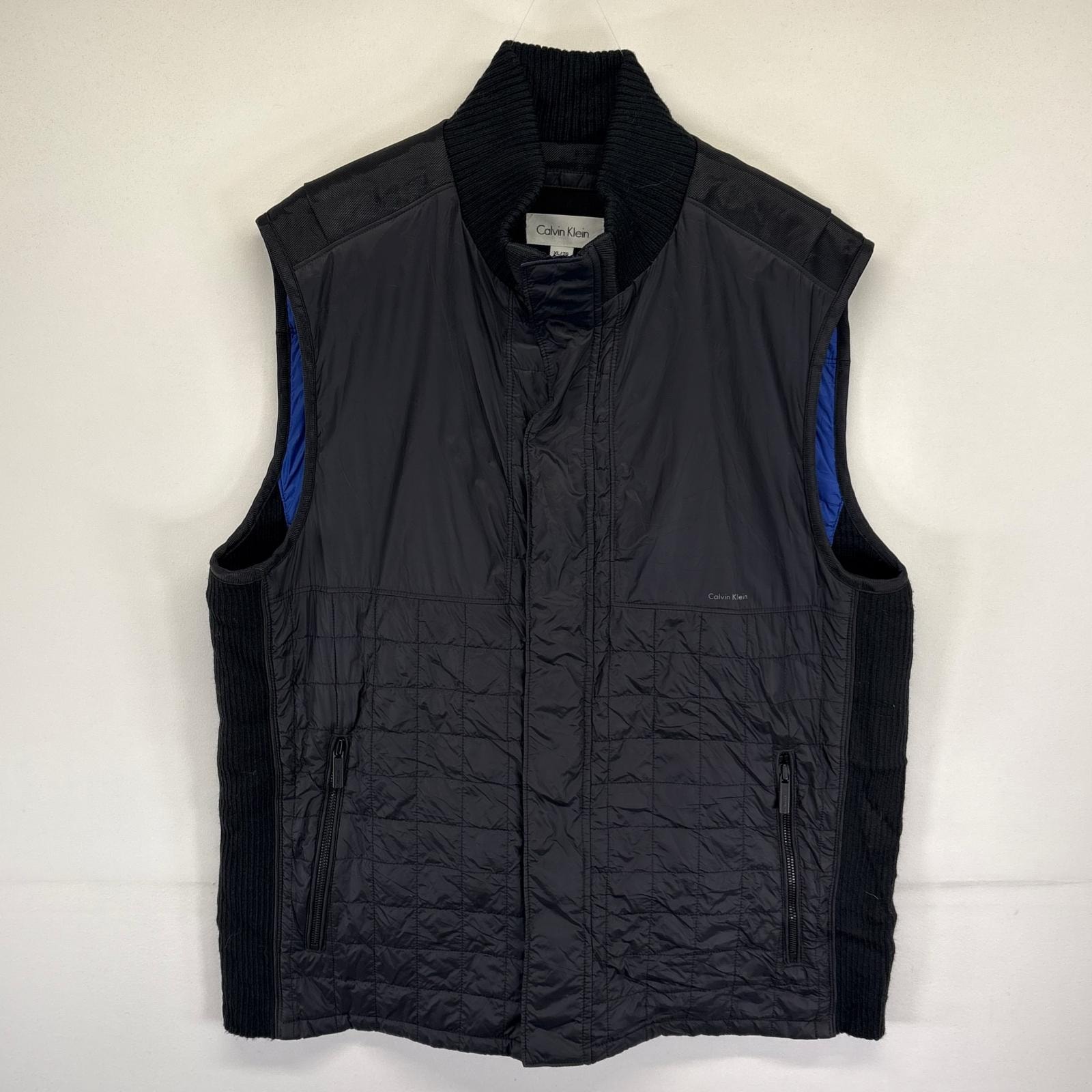 古着 カルバンクライン Calvin Klein ベスト 中綿 フルジップ ワンポイントロゴ 大きいサイズ XL ブラック メンズ