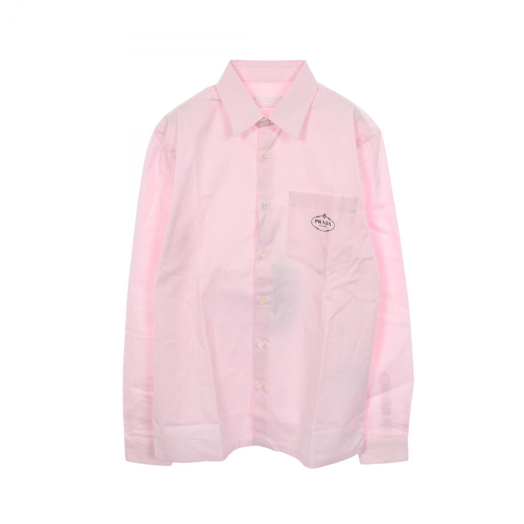 プラダ PRADA ロゴ刺繍 長袖 衣料品 トップス コットン メンズ ピンク系 UCN425 【中古】