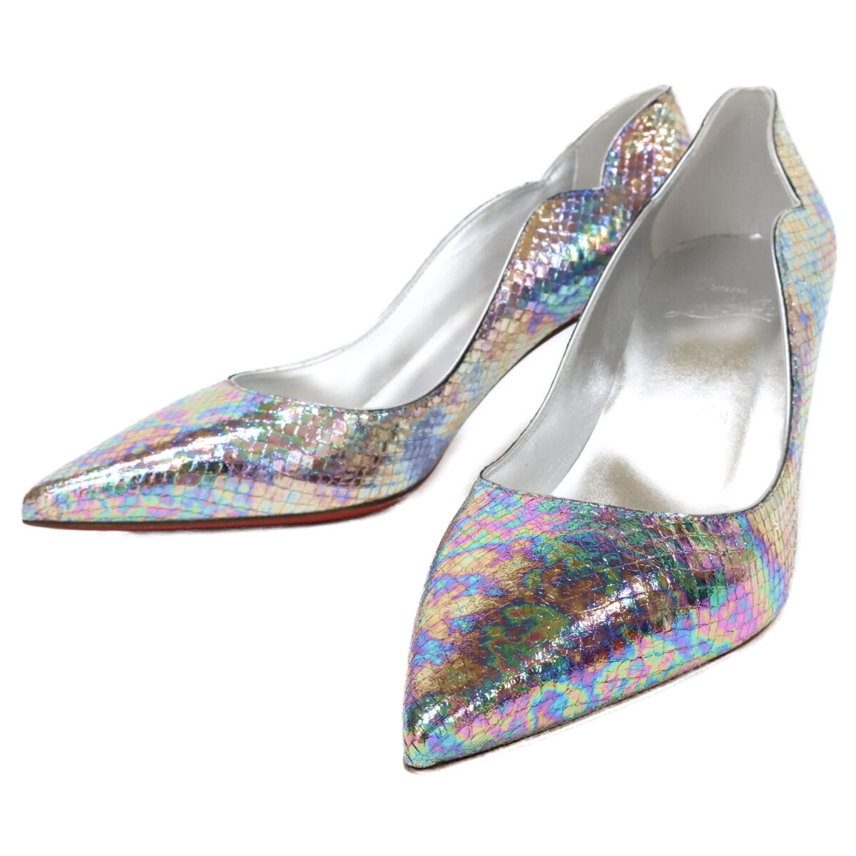クリスチャンルブタン 【美品】ホットチック メタリック ポインテッドトゥ パンプス 37