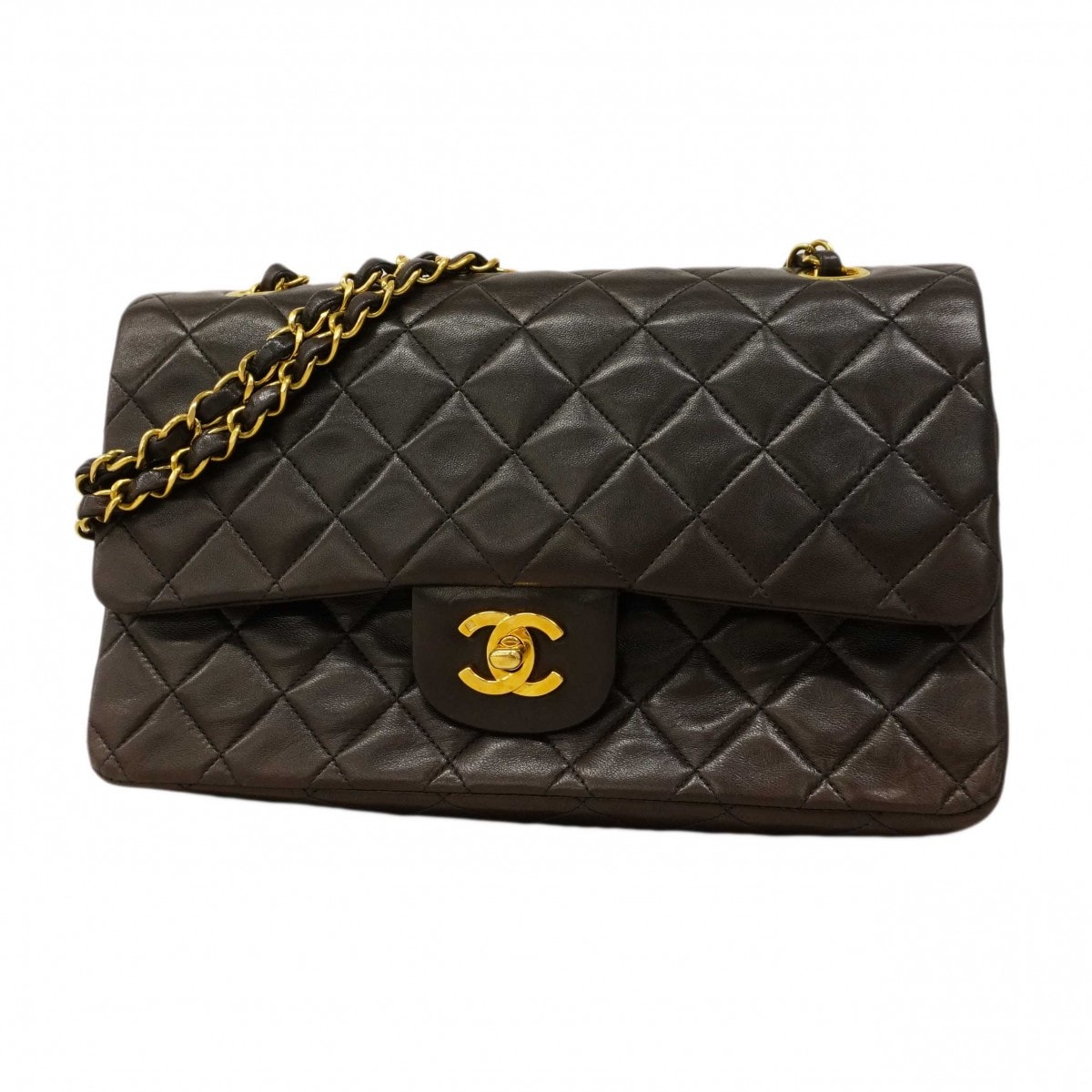 【6dc3231】シャネル ショルダーバッグ マトラッセ Wフラップ Wチェーン ラムスキン ブラック ゴールド金具【中古】レディース