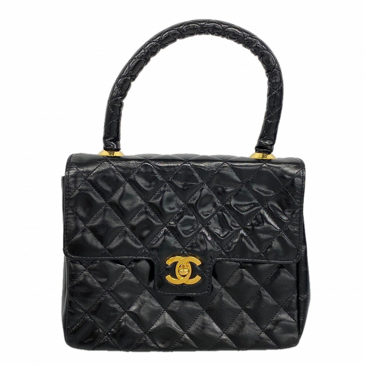 【6dc3331】シャネル ハンドバッグ マトラッセ パテントレザー ブラック ゴールド金具【中古】レディース