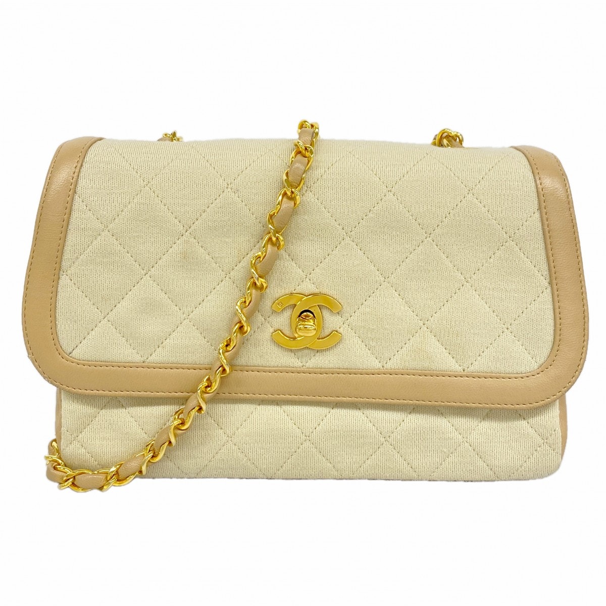 【6dc3330】シャネル ショルダーバッグ マトラッセ チェーンショルダー コットン ベージュ ゴールド金具【中古】レディース