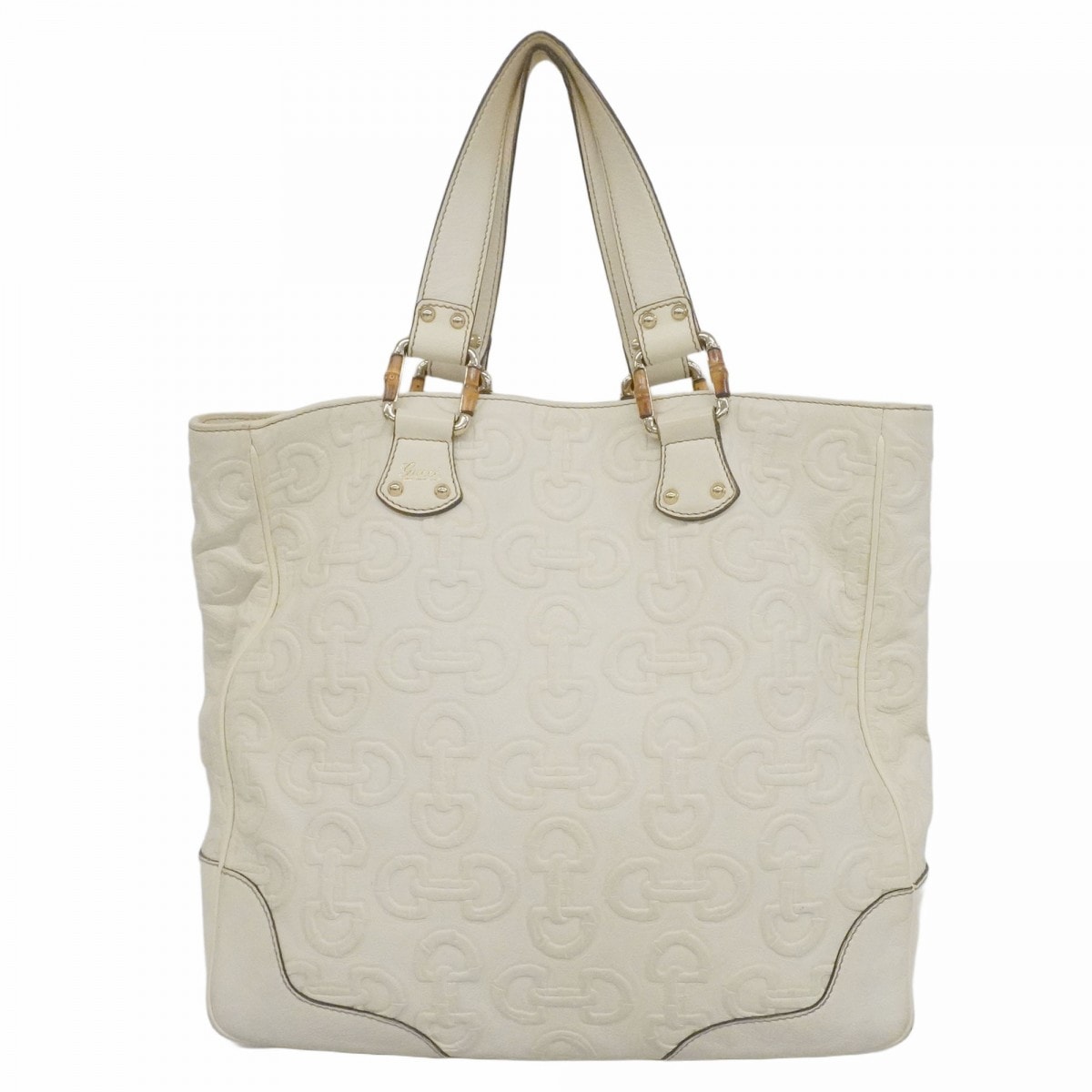 【6dc3317-k】グッチ トートバッグ バンブー ホースビット 154375 レザー ホワイト ゴールド金具【中古】レディース