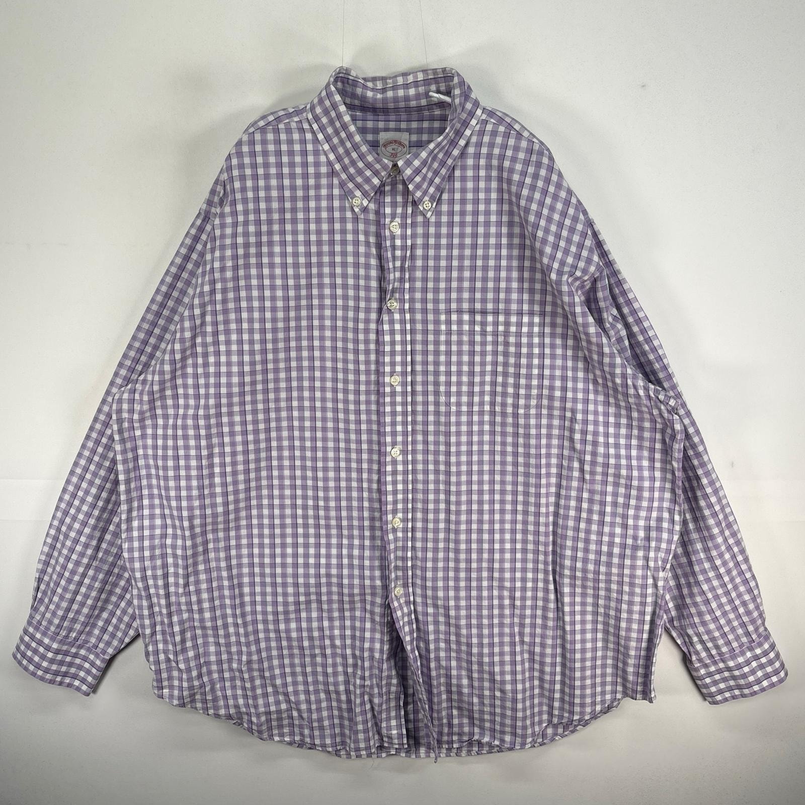 古着 ブルックスブラザーズ Brooks Brothers 長袖シャツ ボタンダウン 胸ポケ XL パープル系 チェック メンズ