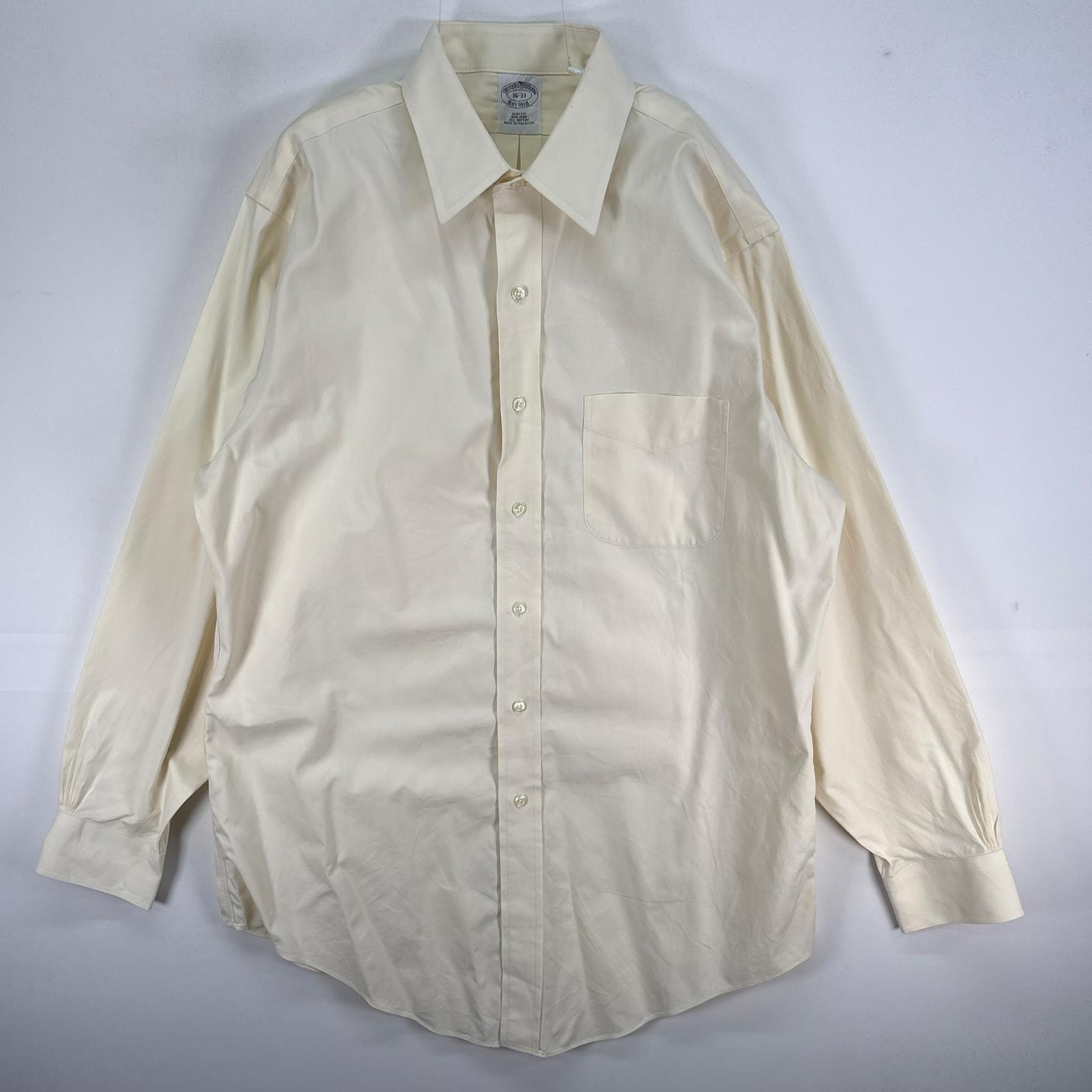 古着 ブルックスブラザーズ Brooks Brothers 長袖シャツ 胸ポケ カラーステイ L イエロー系 無地 メンズ