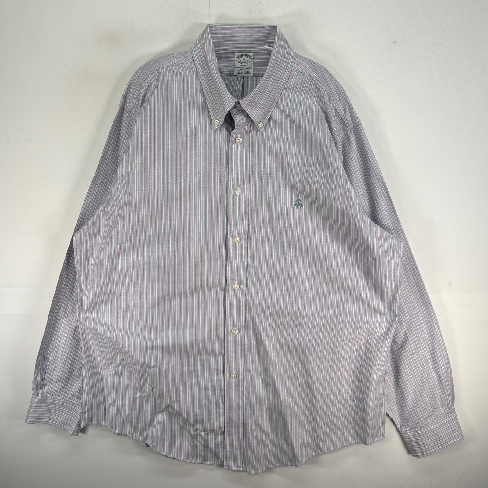 古着 ブルックスブラザーズ Brooks Brothers 長袖シャツ ロゴ 刺繍 ストライプ REGENT XL パープル系 マルチカラー メンズ