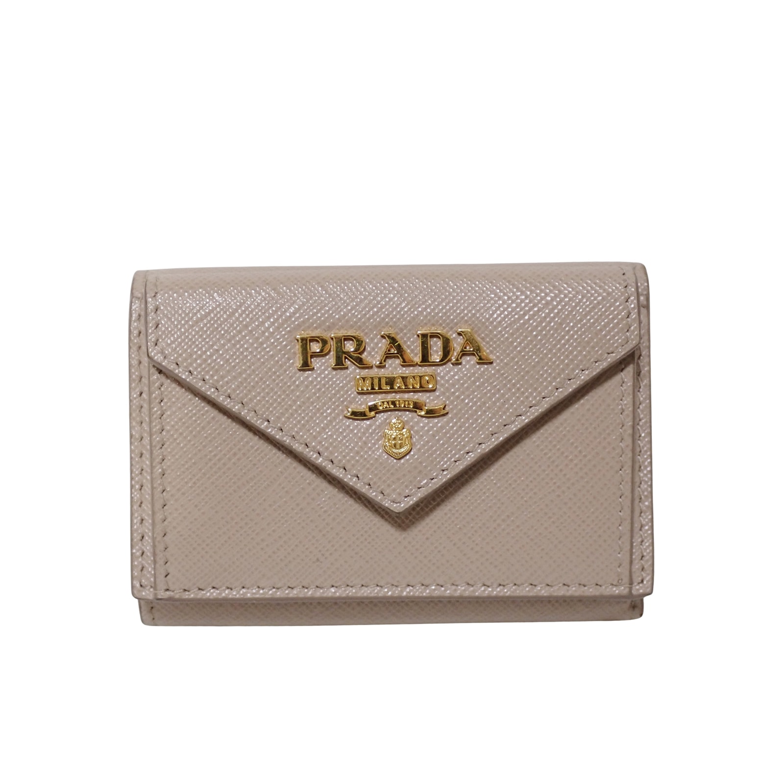 PRADA プラダ サフィアーノ ミニウォレット メタルロゴ 1MH021 ベージュ レディース 三つ折り財布